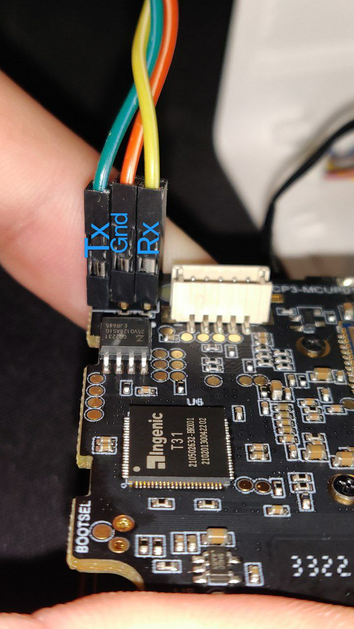 This is a quick test. Ground to ground, tx from the adapter is not connected, rx probes pads and you check output in the terminal app.