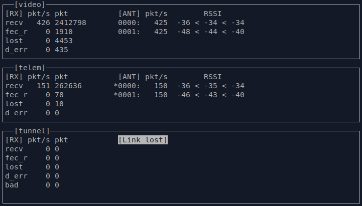 - Make sure that video packets are streaming. Here you can also see the RSSI values of the WiFi adapter antennas: