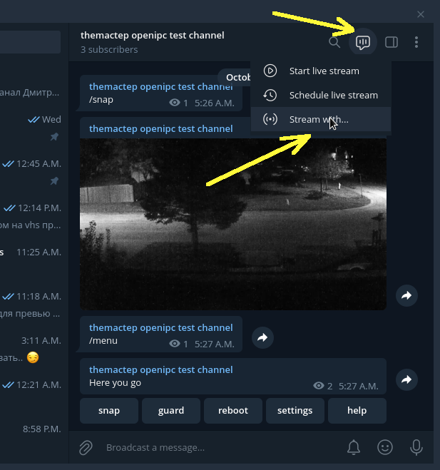 Live streaming to Telegram